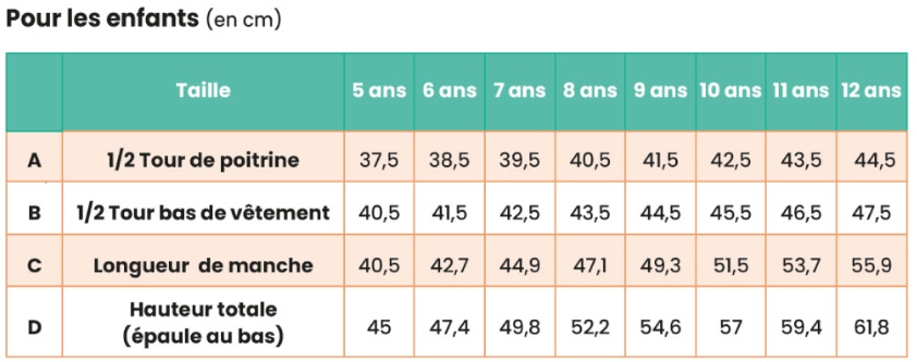 Le patron est disponible pour bébé (1 mois - 4 ans), enfant (5 - 12 ans), femme (32 - 52), homme (XS - XXL).
