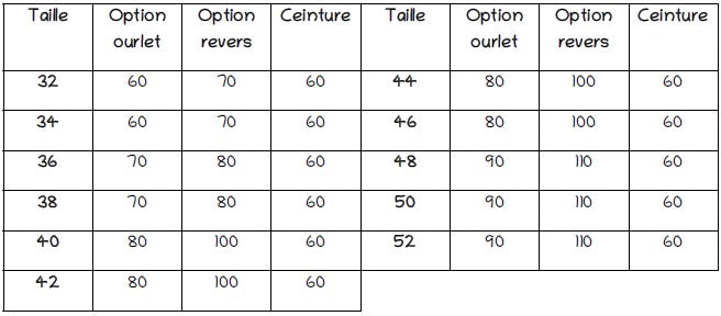 🍊 Du 32 au 52 (90 à 130 environ de tour de hanches)