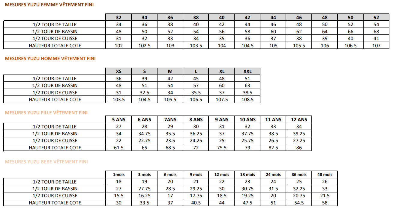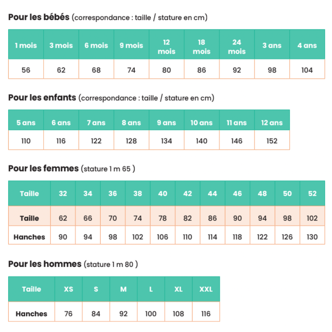 🍊 Pour toute la famille : 1 mois - 4 ans / 5-12 ans / 32-52 / homme XS-XXL